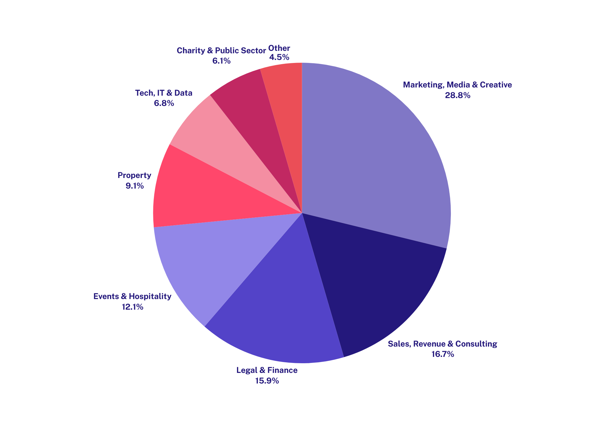 Nearly a third of attendees come from marketing, media and creative agencies, alongside a strong contingent of sales consultants, revenue specialists and professional services firms including legal, finance and accountancy. This creates a commercially minded room where conversations are focused on growth, performance and long-term partnerships rather than casual networking.